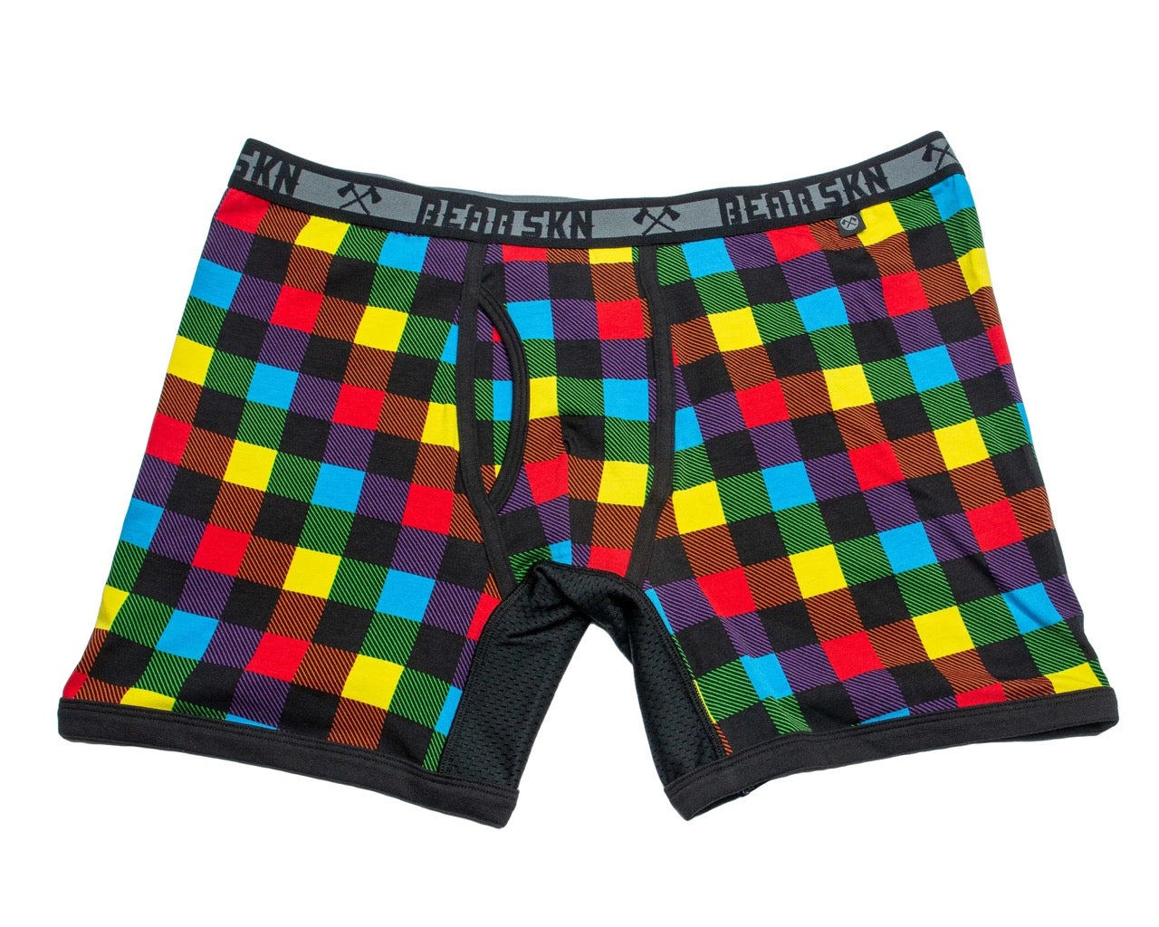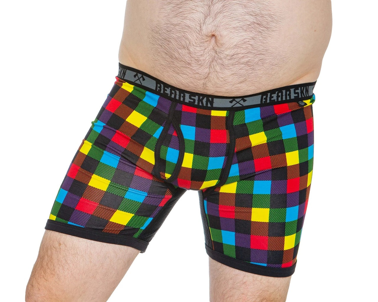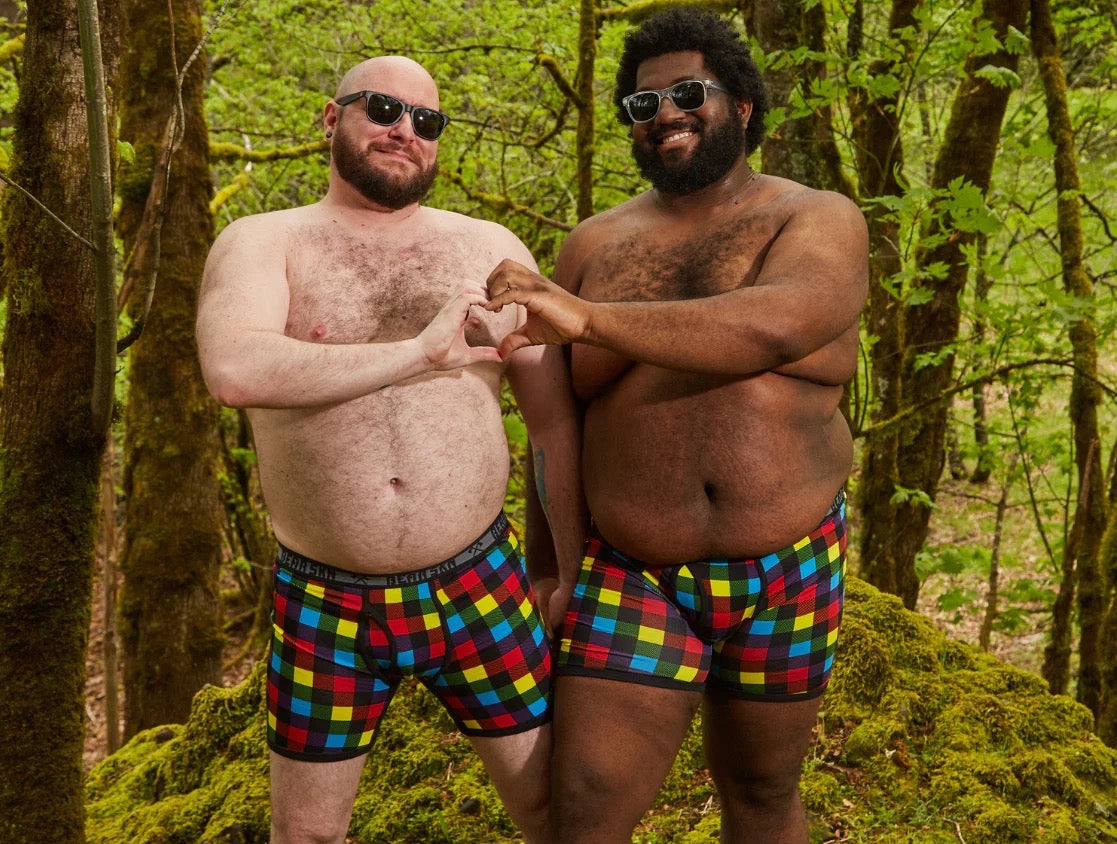 Introducing Bearskn's redesigned classic Backwoods Pride print in new Long Leg Boxer Brief style. This vibrant and pride-inspired print allows you to showcase your authentic self and celebrate the beauty of diversity. The colorful design is a visual representation of the vibrant and diverse community we proudly belong to.