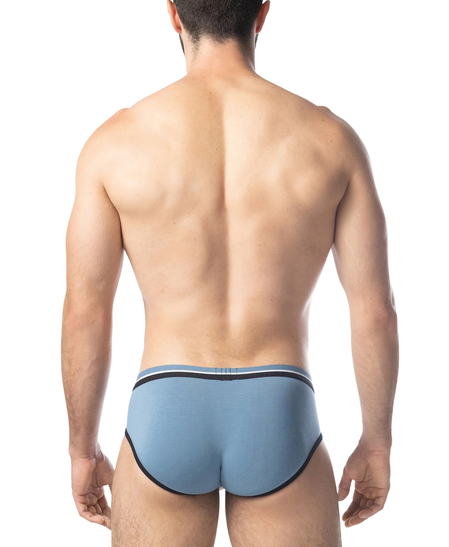 The Nasty Pig Classic U-Front Brief in Blue Steel brings bold contrast and clean lines. A contoured pouch framed by black-and-white stripes and our signature logo front and center. The low-rise fit and slim waistband keep it light, sleek, and supportive—made to move with you and show off your shape.