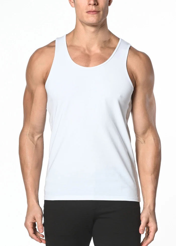 Solid tank with a slightly tapered fit. Featuring a scoop neck, a sleeveless design, a straight hem and contrast binding. Comes in a premium ultra-soft cotton jersey knit with a hint of stretch for added comfort.