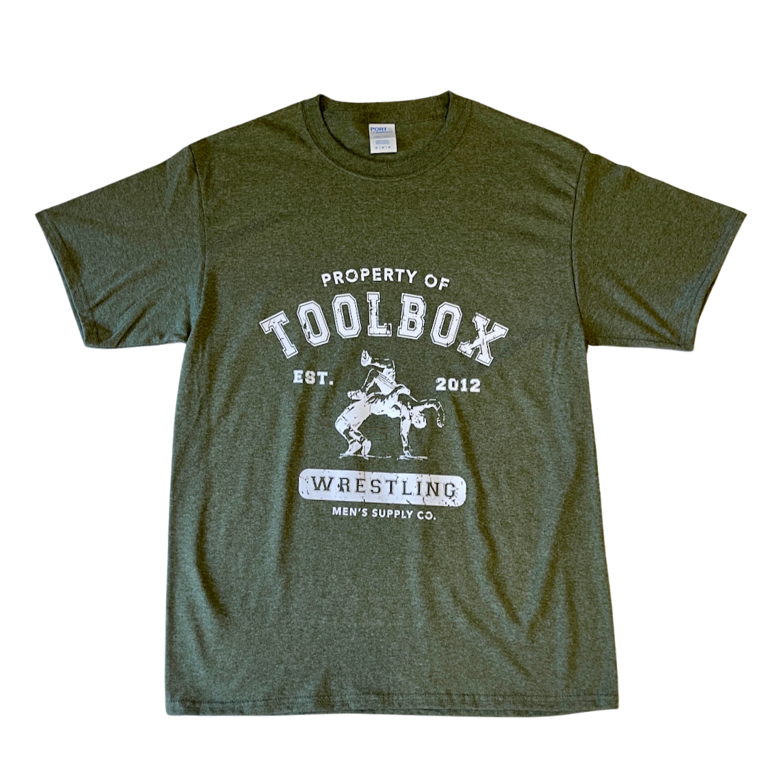 They're back! After a prolonged absence, our athletic-inspired wrestling tees have returned in a handsome heather navy tone. These lightweight tees are a 50/50 poly/cotton blend with a vintage print effect to make it seem like you've had it for years. Available in sizes small-3XL.
