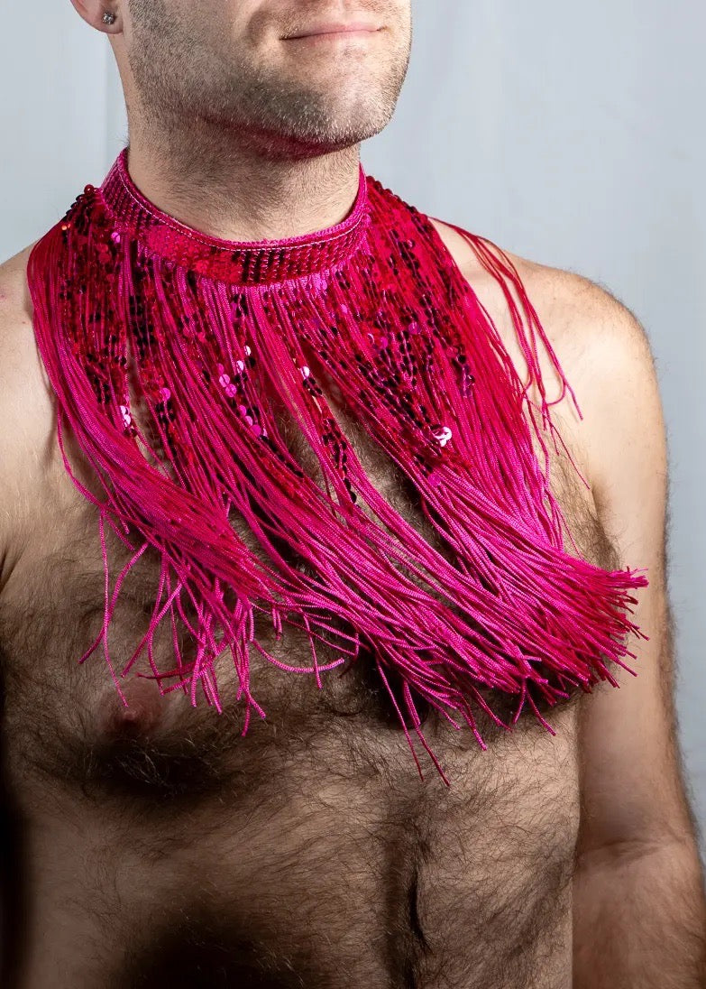 Stun the party with this new choker from Batucada Boi. Heat up the night with a new lewk! Designed for motion with the club in mind. "Batucada" means the drum beat that is the heart of Brazilian music.