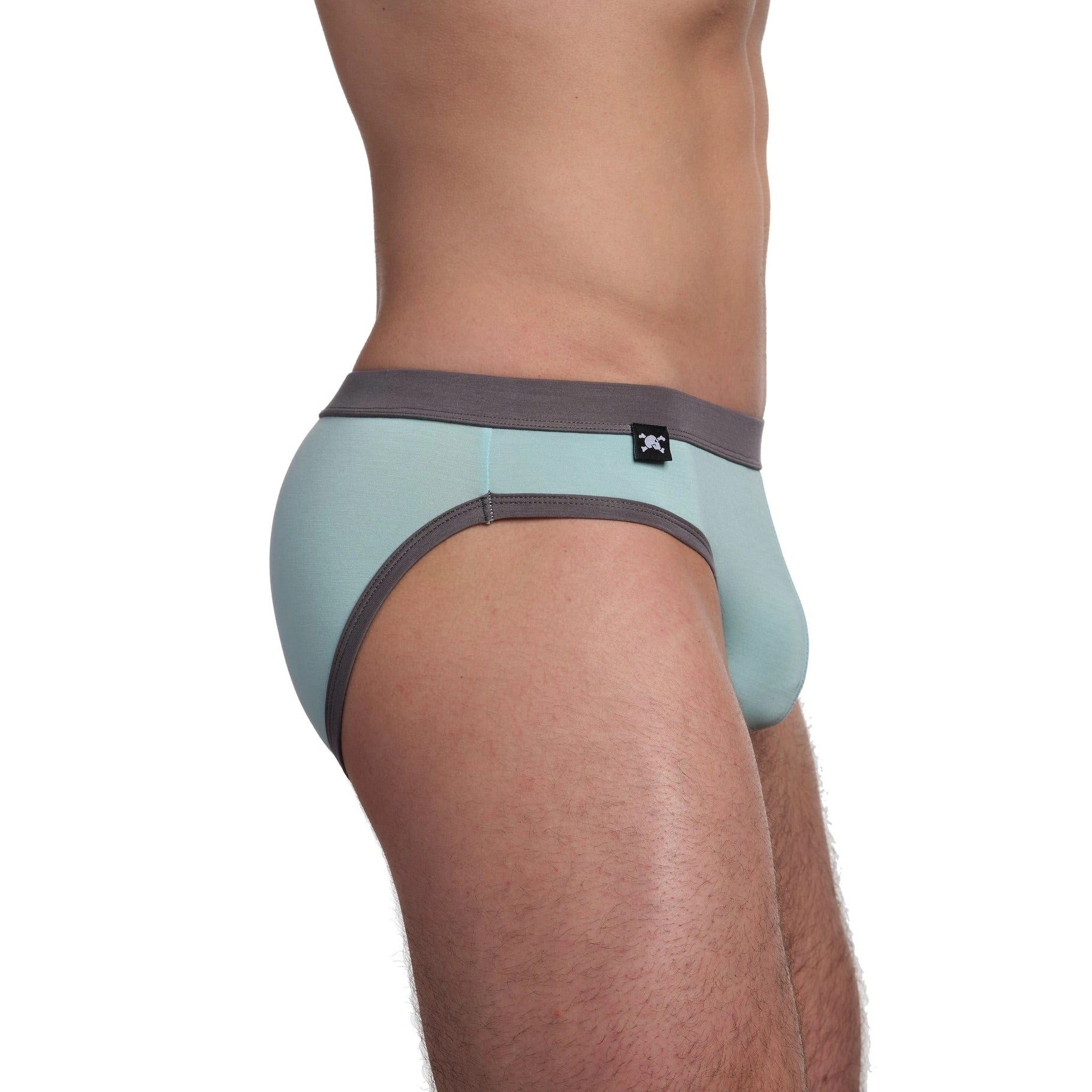 This Skull & Bones brief silhouette features a contour pouch, a self fabric waistband, and flatlock stitching throughout for stretchability and uninhibited movement. Features our signature logo label in black on the front.