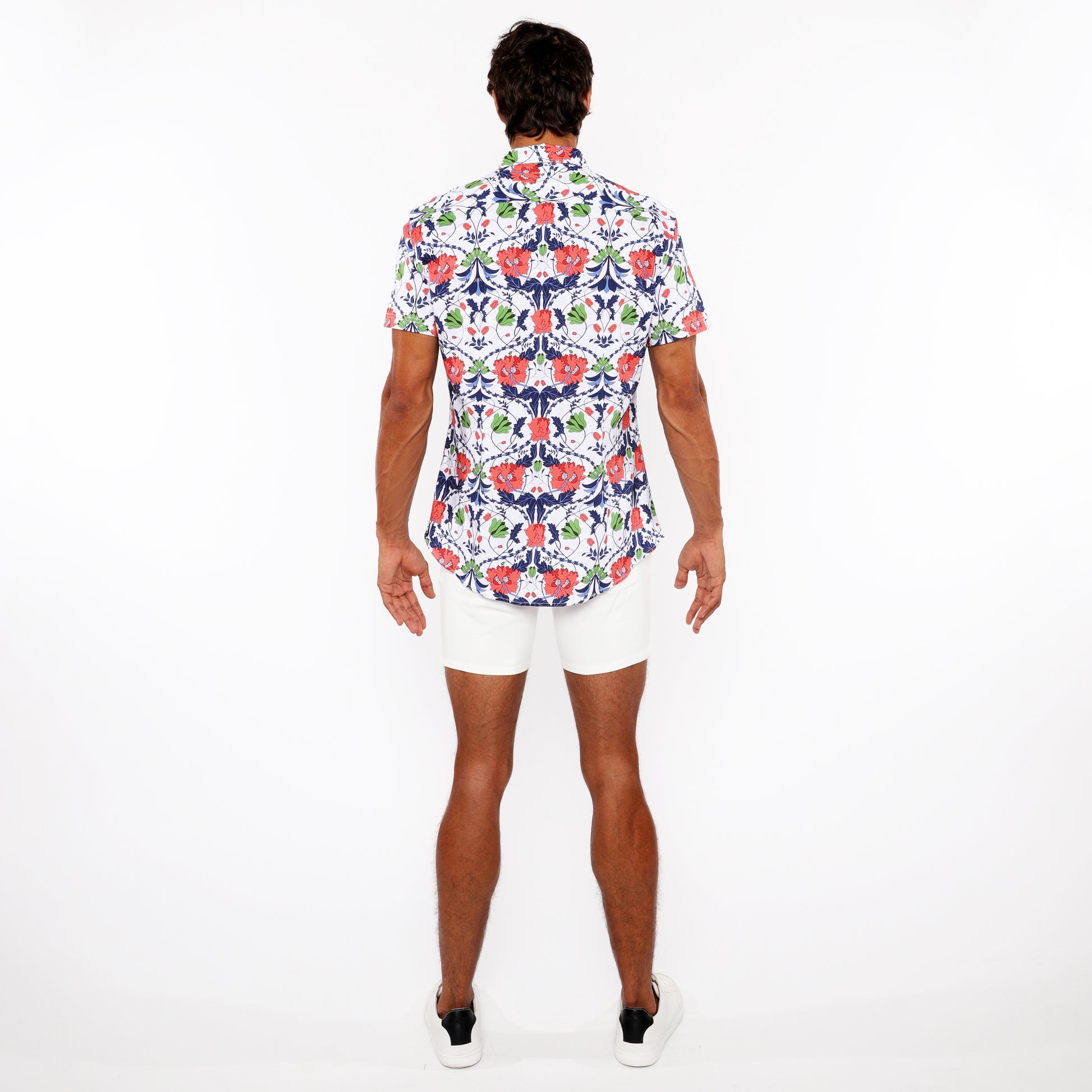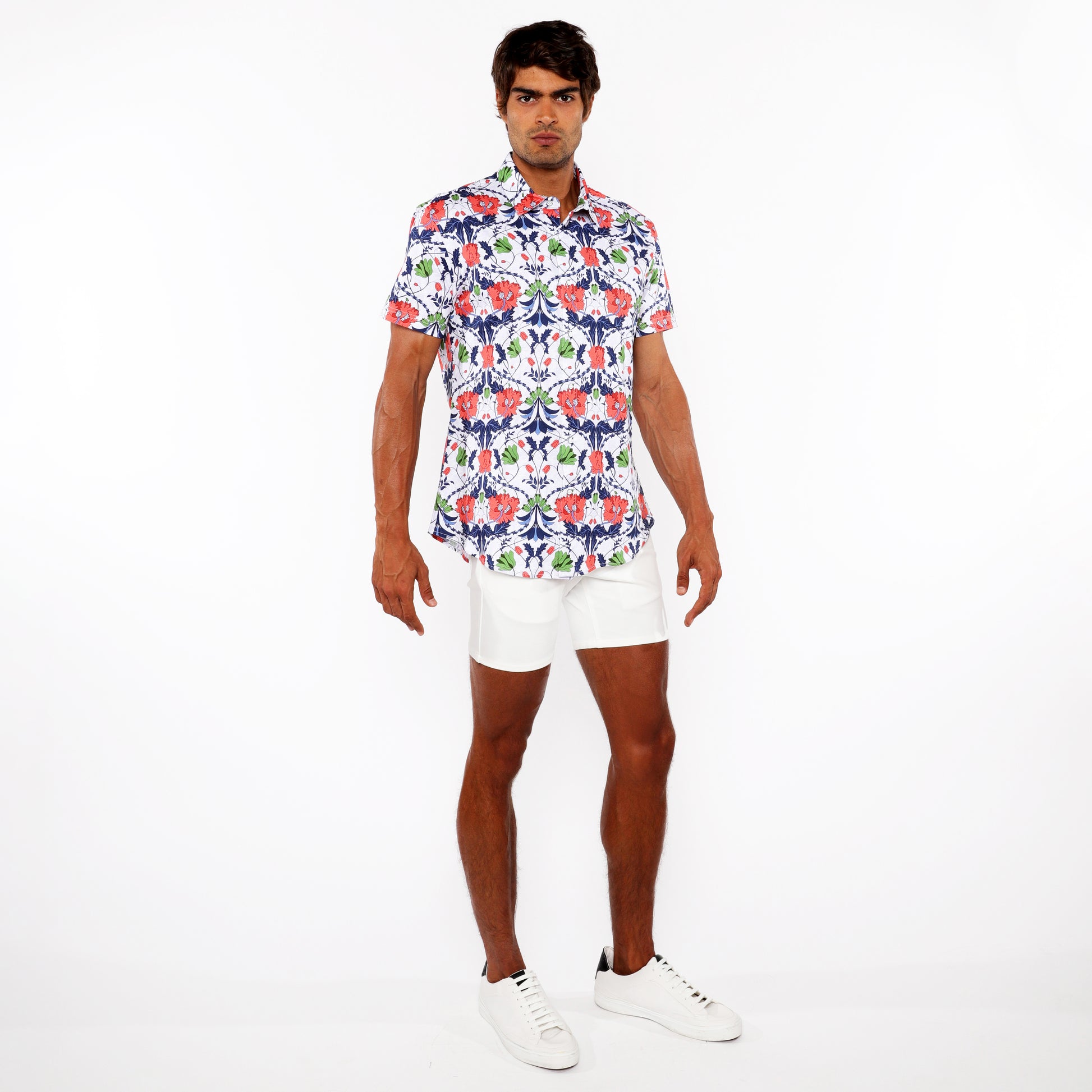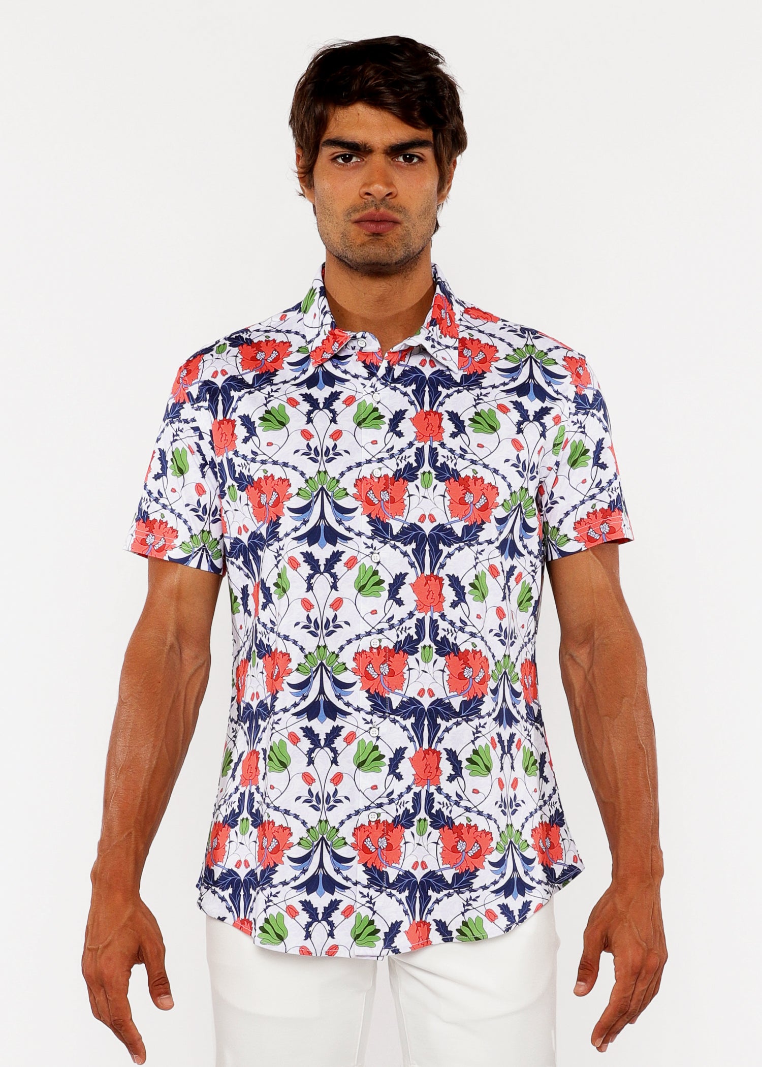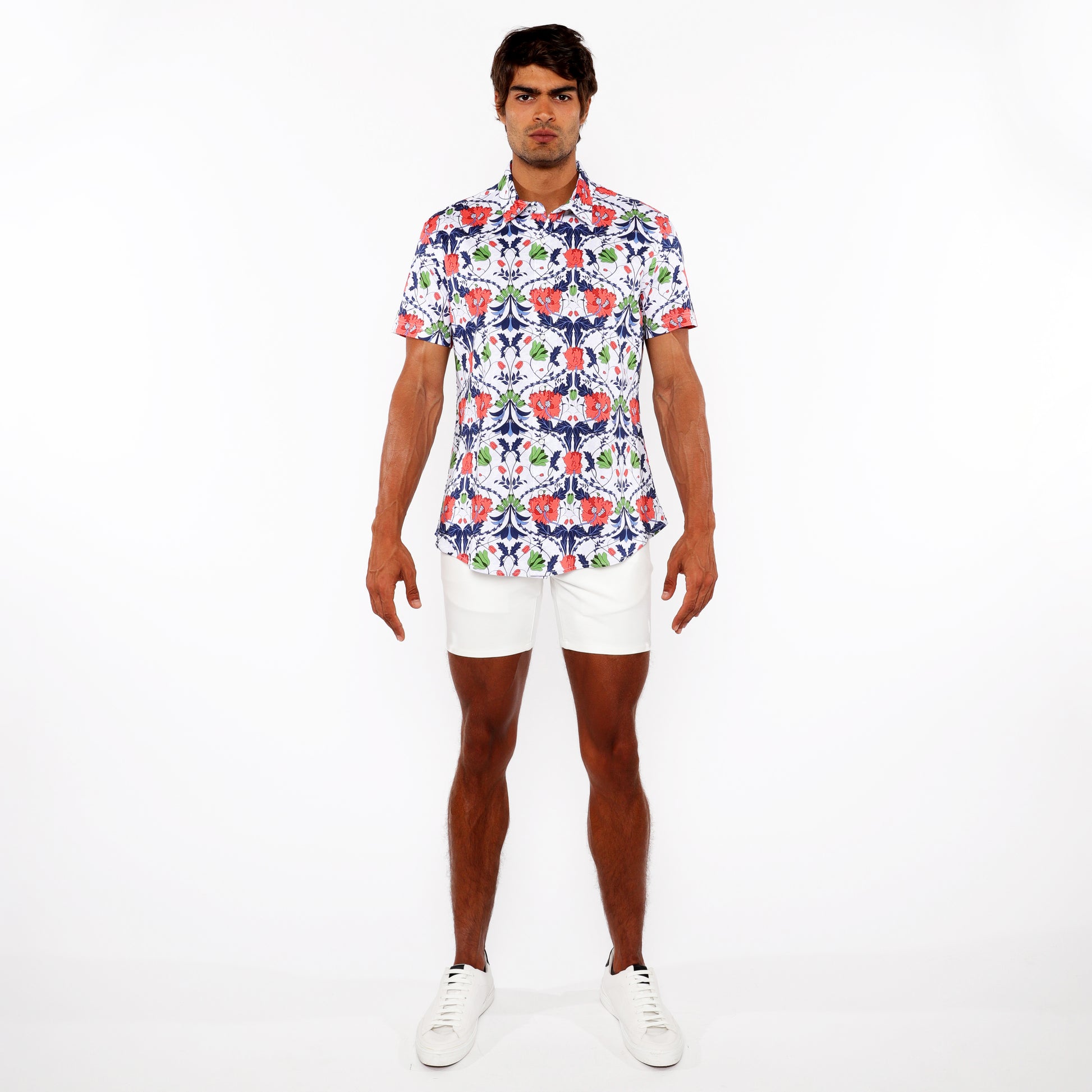 Crafted from a premium cotton-elastane knit jersey, the fabric offers a soft, breathable hand feel with just the right amount of stretch for ease of movement and reliable shape retention. Finished with a spread collar, front button placket, curved hem, and a slightly shorter body length for a crisp, untucked look.