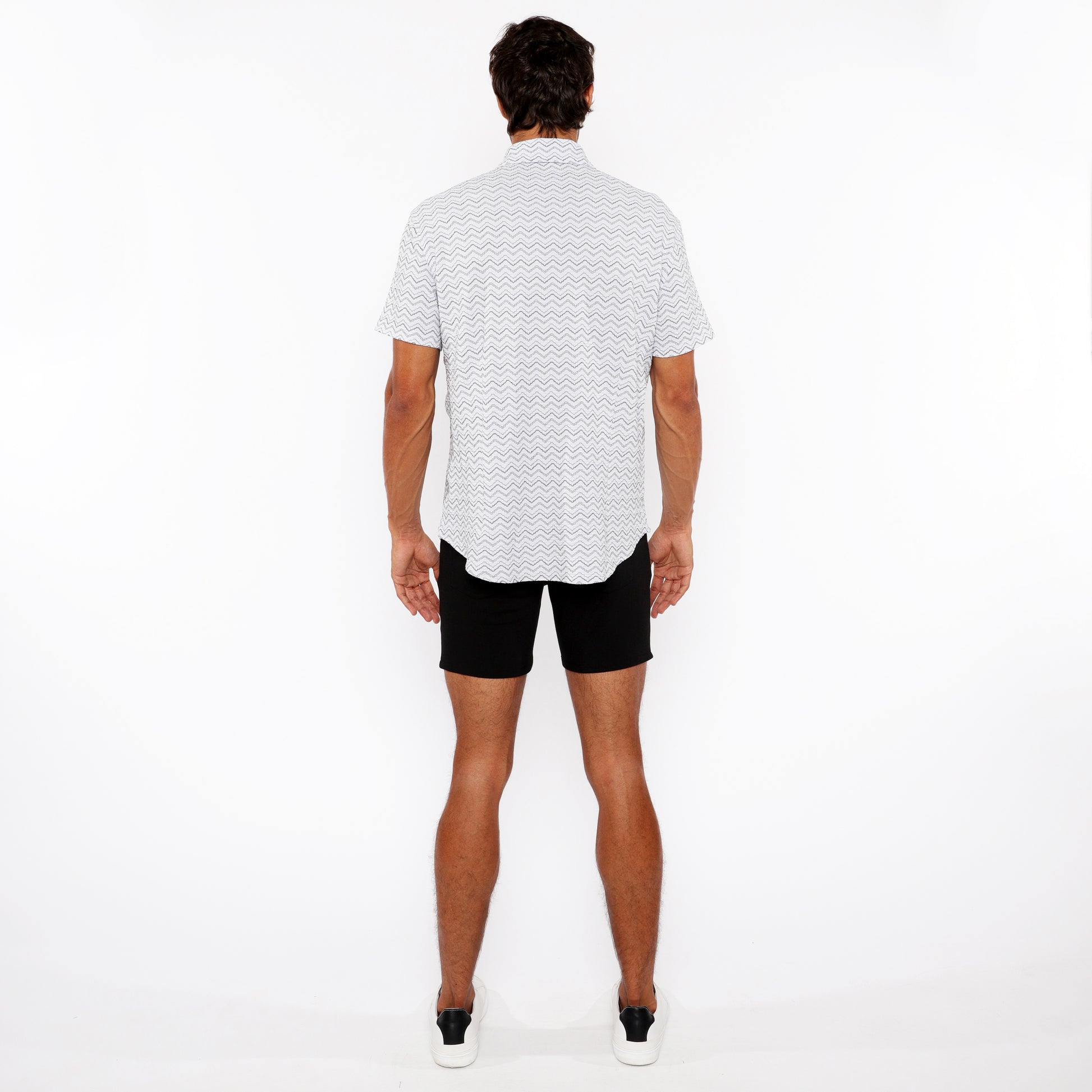 White Crepe Chevron Stretch Short Sleeve Shirt
